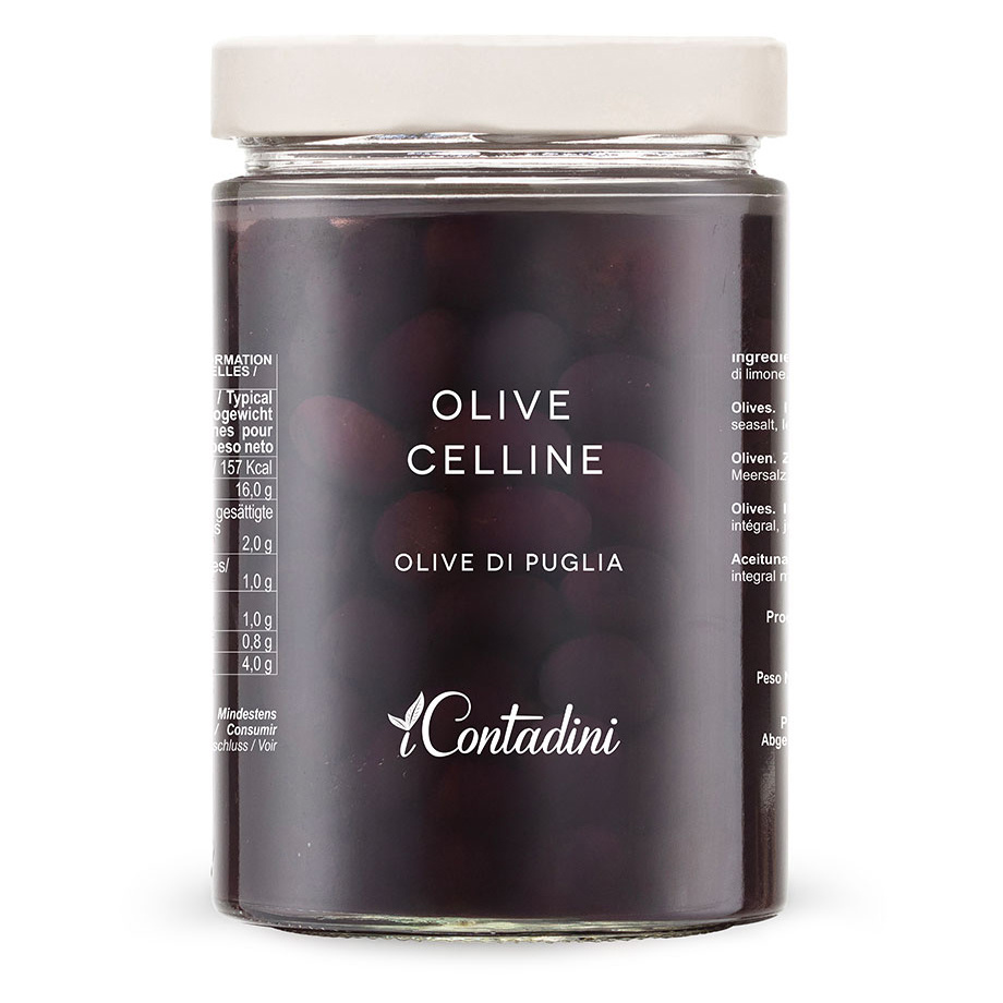 Olive “Celline” to uprawiane w gajach oliwnych iContadini aromatyczne, małe, czarne oliwki. Włoskie gospodarstwo iContadini prowadzi ekologiczne, zgodne z zasadami zrównoważonego rolnictwa uprawy. Każdy etap, od siewu, po zbiory i przetwórstwo odbywa się ręcznie. Dzięki temu wszystkie produkty iContadini zachowują wspaniały, rustykalny charakter i smak. Czarne oliwki Celline trafiły na listę Apulijskich Tradycyjnych Produktów Rolno-Spożywczych stworzoną przez włoskie Ministerstwo Polityki Rolnej, Żywnościowej i Leśnej (Mipaaf).