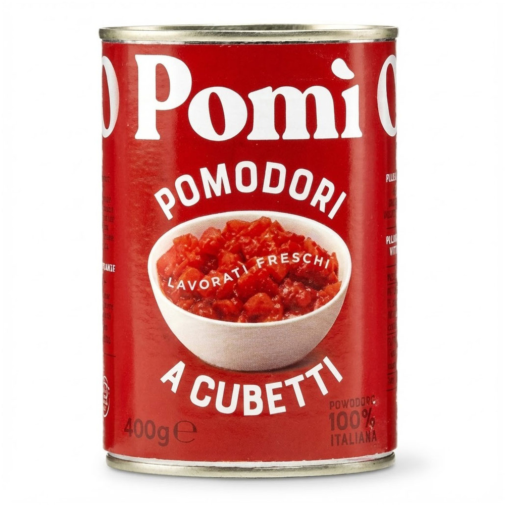 - Pomodori a Cubetti od Pomi to w 100% włoskie pomidory pokrojone w kostkę. Doskonałe do sosów, gulaszu, zup, zapiekanek i dań jednogarnkowych. Naturalne, aromatyczne kawałki pomidorów uprawianych przez lokalnych rolników.