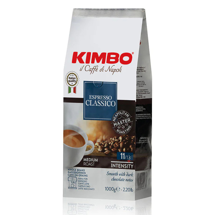 - Włoska kawa Kimbo Espresso Classico to mieszanka ziaren Arabiki i Robusty. Kawa o intensywnym smaku, z aromatem kakao i delikatnymi nutami tostowego chleba, z otulającym posmakiem czekolady.